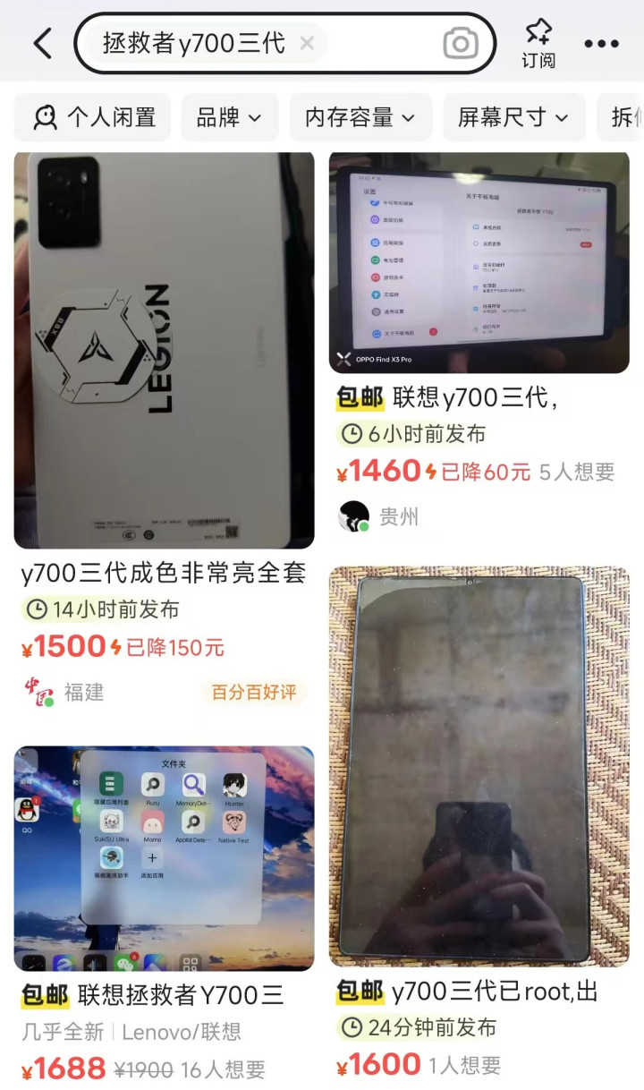 最后按照惯例,我去闲鱼搜了一圈Y700,二手均价1500元左右,比现在全新国补价还高,我说是“传家宝”没问题吧?另外整个Y700系列,只有3代不支持TF卡扩展,之前的1/2代和新出的4代(骁龙8至尊)都能插TF卡的。换言之,3代不支持TF卡被骂惨了,所以在4代上面恢复了。